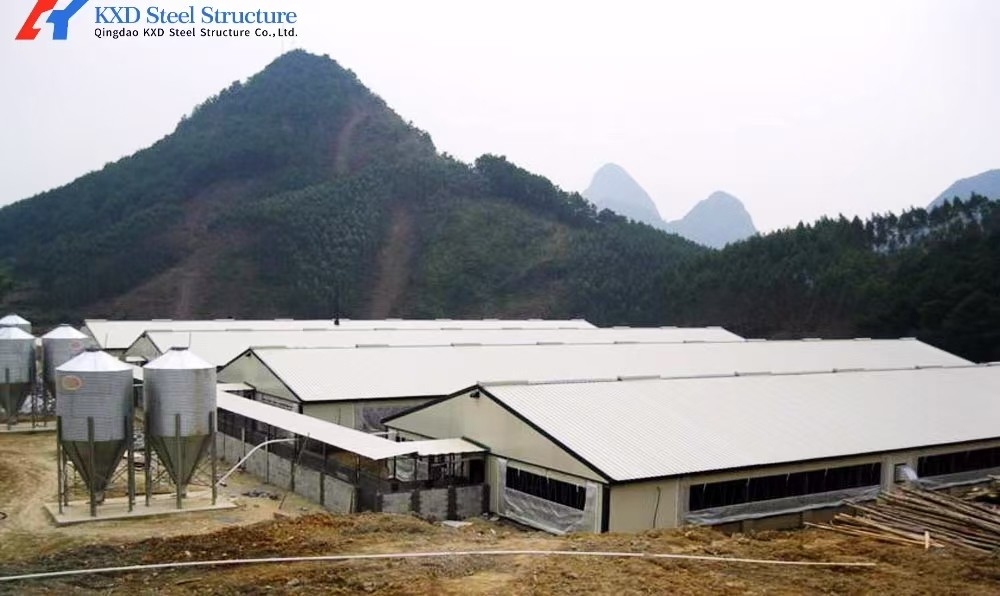 Prefabrykowana konstrukcja stalowa o niskiej masie ciała kurczaka stodoła stalowa domek dla drobiu